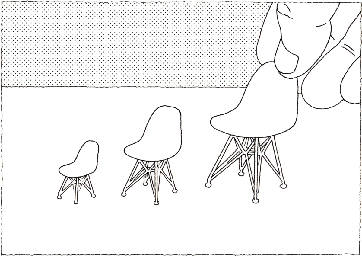 歴代の巨匠たちが残してきた名作は現代においてもなお愛され続けています。 それらの名作を「原形」として、時代に寄り添い姿を変えながら多様な椅子が日々生まれています。 わたしたちは、この「原形」から建築模型用の家具を生み出したいと考えました。 「模型の家」の椅子たちが空間を引き立てるエッセンスになることを期待しています。